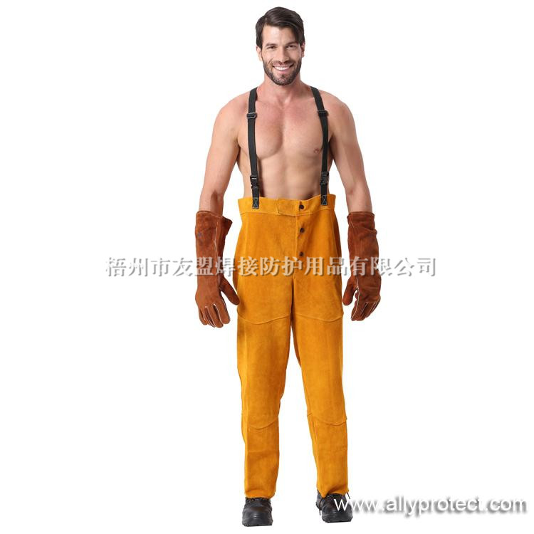 - 產(chǎn)品描述: 金黃色牛二層皮全皮焊褲,能夠在焊接飛濺嚴重的環(huán)境中,給使用者的身體提供安全有效的保護。