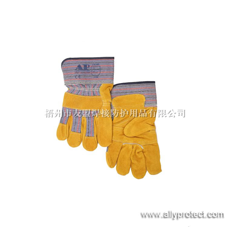- 產(chǎn)品描述: [ AP ]掌位部分采用耐磨、抗穿插的金黃色牛二層皮,背布設(shè)計(jì)透氣性強(qiáng),內(nèi)里采用舒適吸汗的棉質(zhì)內(nèi)里,夾膠安全袖加強(qiáng)手腕防護(hù),雙線縫制耐用性高。