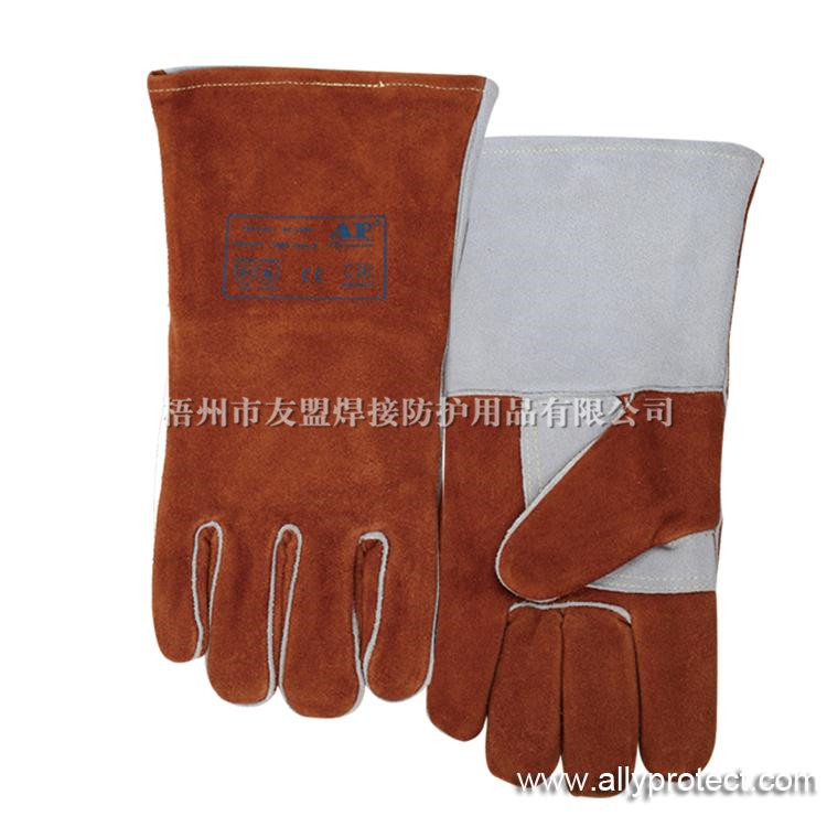 - 產品描述: [ AP ]咖啡色牛二層皮全皮電焊手套,斜耐磨掌連指托層和加厚內里設計,適用于焊接、切割及搬運等用途。